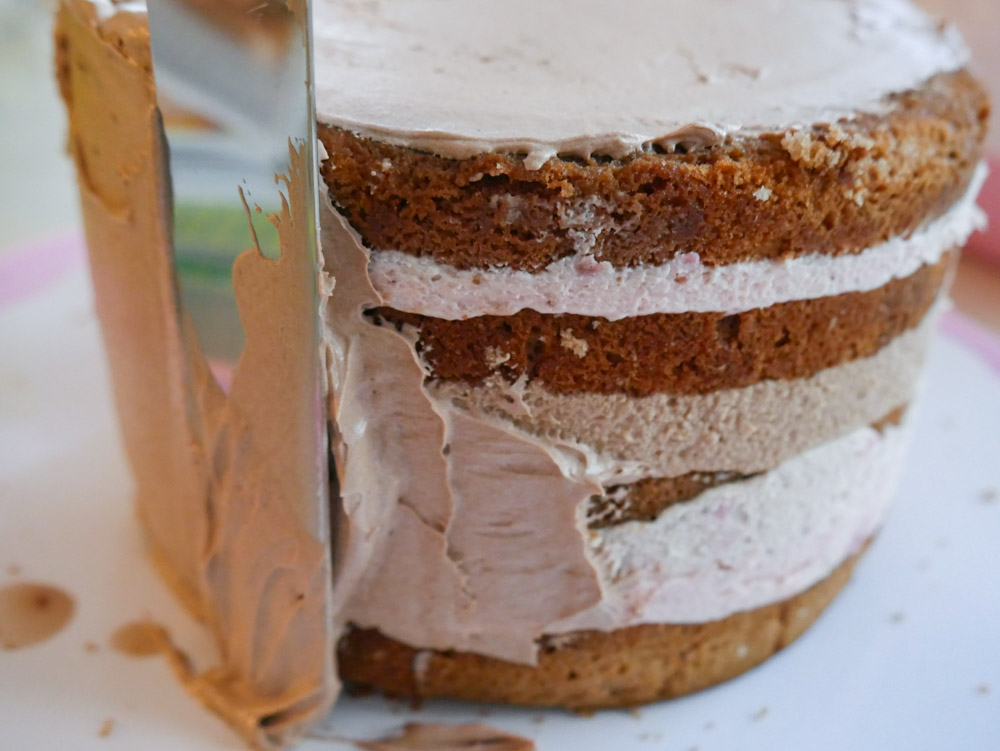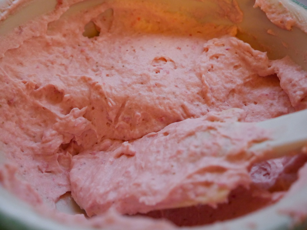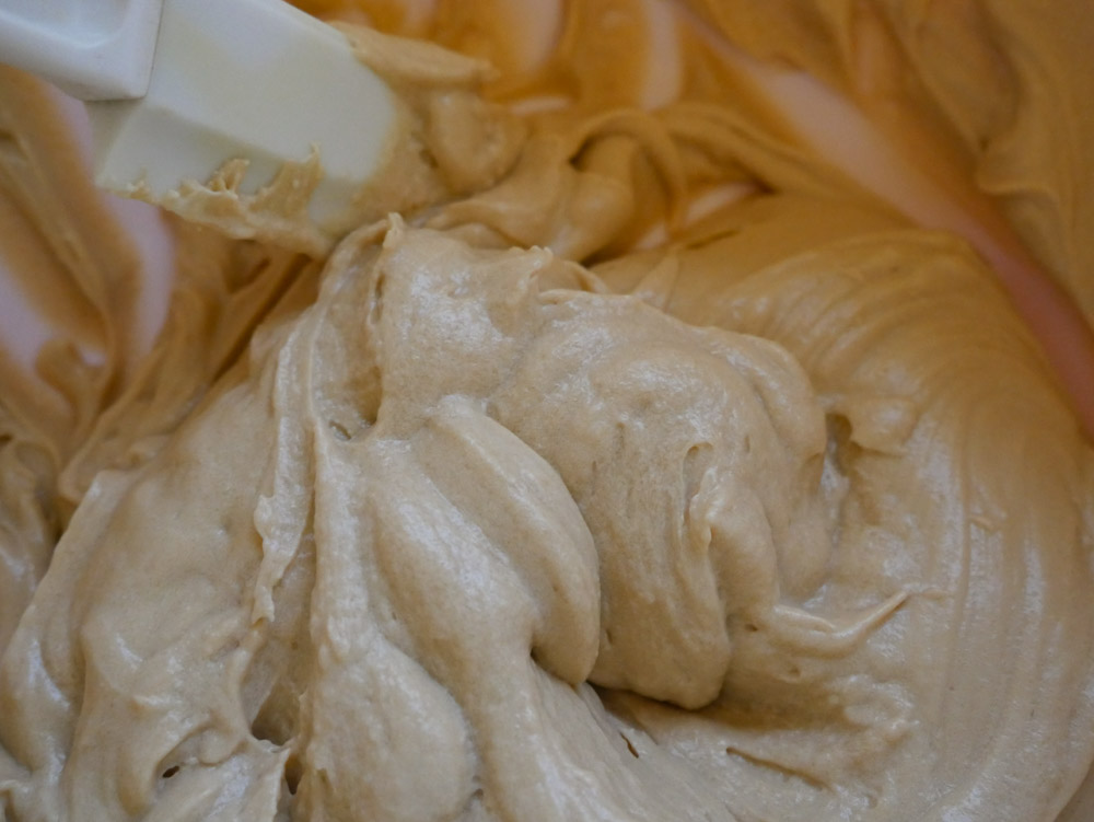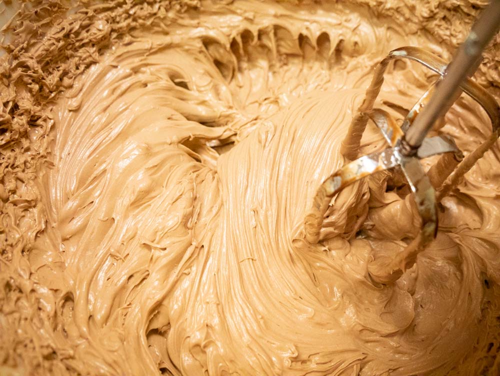 Vatkaa 2 dl kermaa vaahdoksi. Sulata pieni määrä voita miedolla lämmöllä vesihauteessa, lisää Dumle-karkit ja ½ dl kermaa (voita ei ole pakko käyttää). Kun karkit ovat sulaneet, ota seos pois vesihauteesta ja vatkaa nopeasti ja voimakkaasti tuorejuusto Dumle-seokseen. Vatkaa Dumle-tuorejuustoseos ja vaniljakreemijauhe kermavaahdon joukkoon. Tässä kohtaa saattaa usko loppua, jos seos muuttuu ryynimäiseksi, eli juoksettuu. Jatka silti vatkaamista ja lisää tarpeen mukaan vähissä erissä vaniljakreemijauhetta kunnes seos on jälleen sileää ja riittävän jämäkkää.