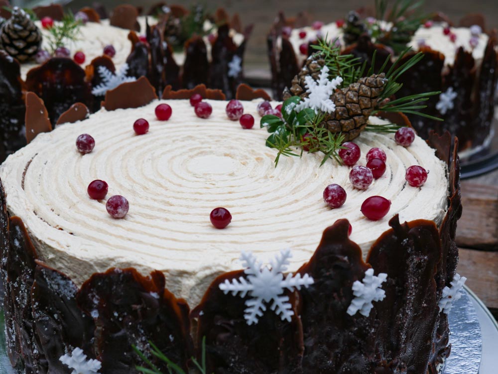 Reseptivihkossa ohje kantokakun pakkasen pureman kaarnan valmistukseen ja valkosuklaapuolukkajuustokakun resepti (linkit kuvien alapuolella).