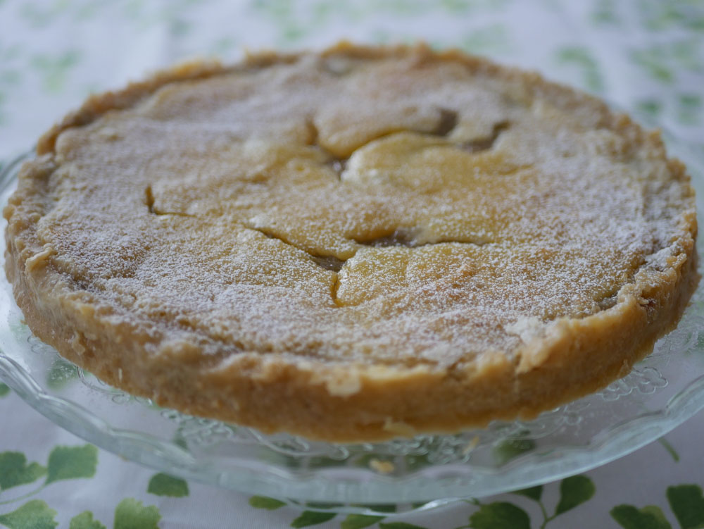 Raparperipiiras valmistui jälkiruokapiiraan reseptiä soveltaen. Piiraasta tuli gluteeniton vaihtamalla vehnäjauhot glueteenittomaan jauhoseokseen, jauhojen määrää hieman lisäten. Alkuperäisestä reseptistä poiketen pohjataikinaan lisättiin myös vaniljasokeria. Piiraan täytteeksi mantelikiisselin alle tuli aiemmin valmistettua raparperikompottia. Kotitekoinen kompotti käyttäytyi uunissa odotetusti, kiehui ja kuohui huolestuttavasti. Tästä ei kuitenkaan ollut haittaa. Gluteeiniton versio jälkiruokapiiraasta vaatii kunnon jäähdytyksen, jos sen haluaa siirtää toiselle alustalle. Irtopohjavuoassa paistetun piiraan siirto tarjoiluastialle tai kakkupahville onnistuu hyvin jääkaappikylmänä. Paria päivää aiemmin tehty (ja syöty) koeversio oli jääkaapissa riittävän pitkään, nyt rotinaksi tehty piiras hieman kärsi siirrosta. Raparperipiiraan kauneusvirhettä korjattiin sirottelemalla tomusokeria päälle.